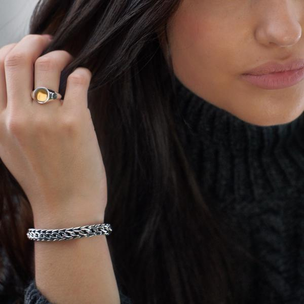 Zilveren handgemaakte armband, een echt statement piece. Deze robuuste armband is mooi open gevlochten en is afgewerkt met het bekende stevige SILK bakslot. Het slot van deze armband leent zich goed om te personaliseren met bijvoorbeeld jouw initialen, of speciale tekst naar keuze. Ook is deze armband heel erg geschikt voor het plaatsen van een mooie vingerafdruk.