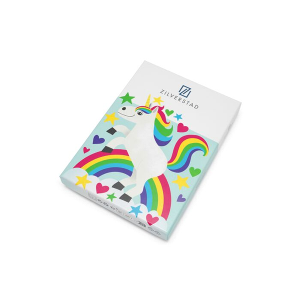 Kinderbestek van hoogwaardig 18/10 RVS met de afbeelding van een unicorn. De set is vaatwasmachinebestendig en bestaat uit een vork, mes, lepel en paplepeltje. De eerste hapjes waren nog nooit zo leuk!