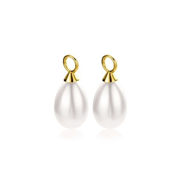 ZINZI gold plated zilveren oorbedels met witte peervormige glasparel. De parel is 15x10mm groot. De oorbedel is verkrijgbaar in verschillende leuke en opvallende kleuren. Hang ze sierlijk aan je zilveren Zinzi oorringen. De oorringen zijn niet bij de prijs inbegrepen. Vervaardigd van eerste gehalte zilver (925) en met extra 14K geel vergulding.