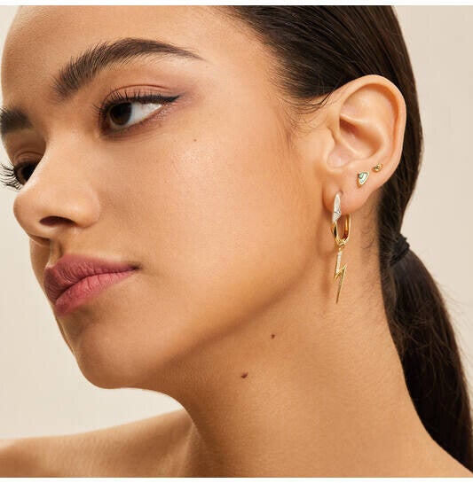 Deze hoekige, op een pijl geinspireerde goudkleurige oorknoppen met een abalone groene schelp geeft elke vrouw de perfecte look.