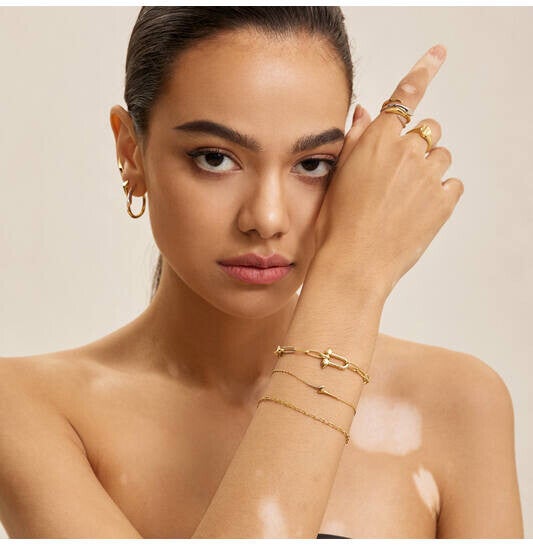 Versier je pols met een vleugje tweekleurig, met deze prachtige zilveren armband met pijlmotief.