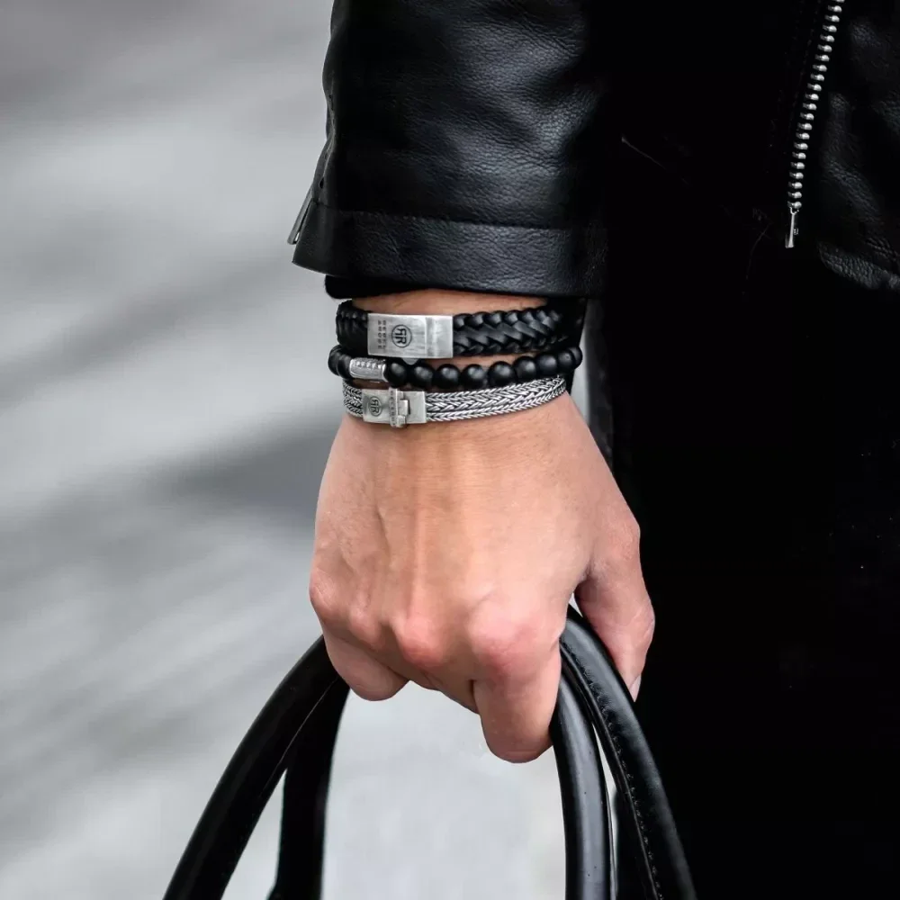 De Electra armband bestaat uit 3 dunne met de hand gevlochten banden. De banden zijn los van elkaar wat een speels effect geeft bij het dragen. De band is 8,5 mm breed, verkrijgbaar in 5 maten en geschikt voor mannen en vrouwen. Het sieraad is mooi te combineren met onze stoere leren armbanden, maar ook met onze kralen armbanden van edelsteen.