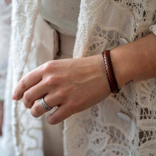 Ontdek nu de prachtige Balinese gevlochten cognac bruine lederen armband van SILK Jewellery's nieuwste collectie. Met zijn iconische bakslot straalt deze armband vakmanschap en stijl uit. Combineer het met gedurfde ontwerpen uit onze Bold collectie, zoals de 349 of 371, met een in elkaar geweven schakelstructuur die een mooie halfronde vorm creëert en zeer comfortabel draagt.