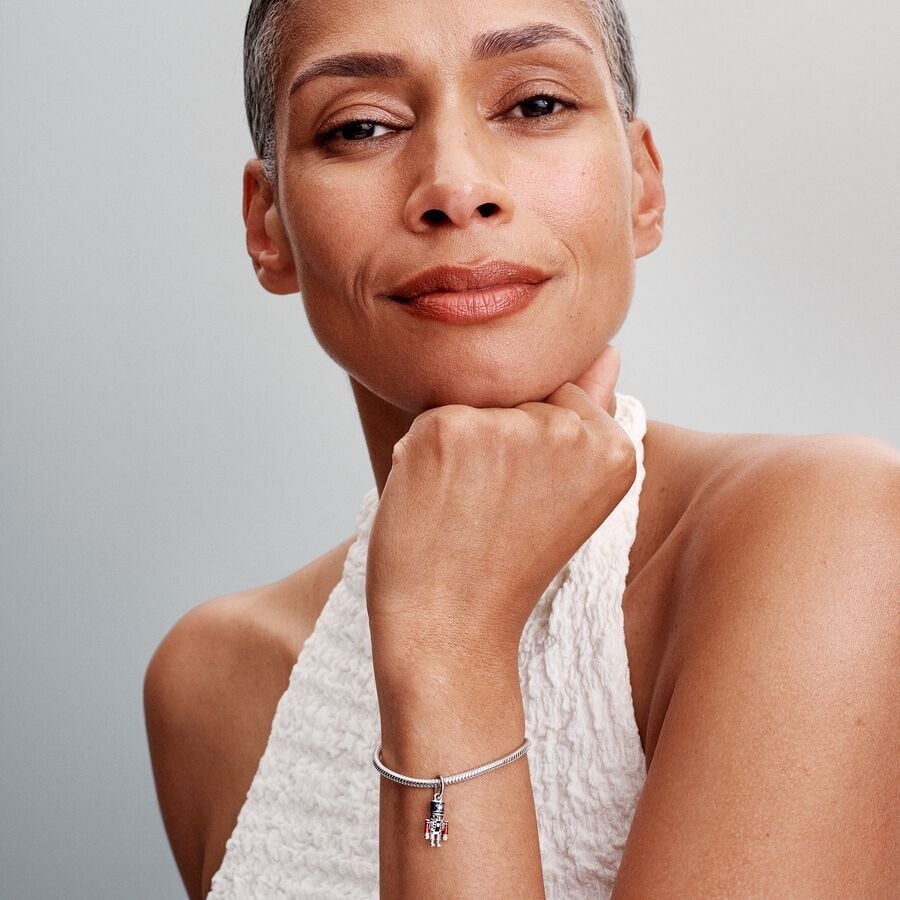 Voeg een kersticoon toe aan je collectie met onze hangende bedel met beweegbare Notenkraker. De mond van de Notenkraker is gemaakt van sterlingzilver en kan omhoog en omlaag bewegen met een hefboom. Glinsterend blauw email geeft zijn traditionele uniform een levendige touch en een sprankelende steen schittert als de ster op zijn hoed.