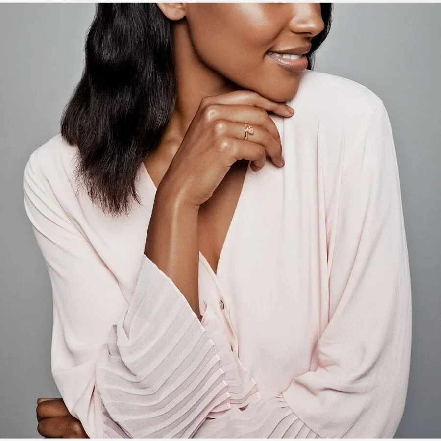 Roep gevoelens van eeuwige liefde op met deze strakke ring in Pandora Rose, met een hangend hangslotje in het middenstuk met het Pandora-logo in reliëf en klinknageldetails.