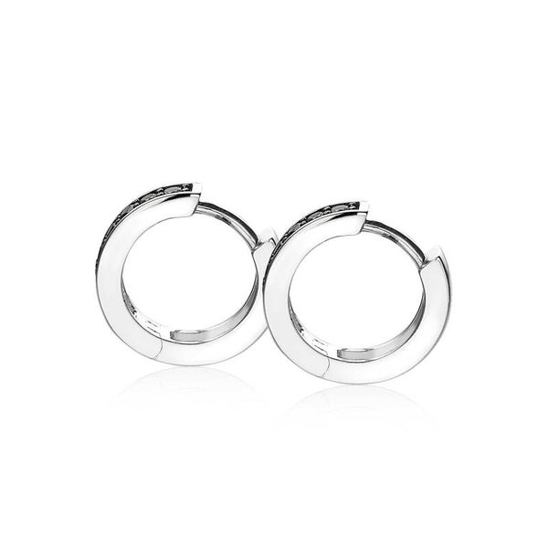 ZINZI zilveren oorringen bezet met zwarte zirkonia's en voorzien van luxe scharniersluiting. De oorringen zijn 15mm x 3mm groot. Ideaal om te combineren met Zinzi oorbedels. De oorringen zijn stevig van het eerste gehalte zilver (925) en voorzien van een rodiumlaag voor een extra langdurige glans.