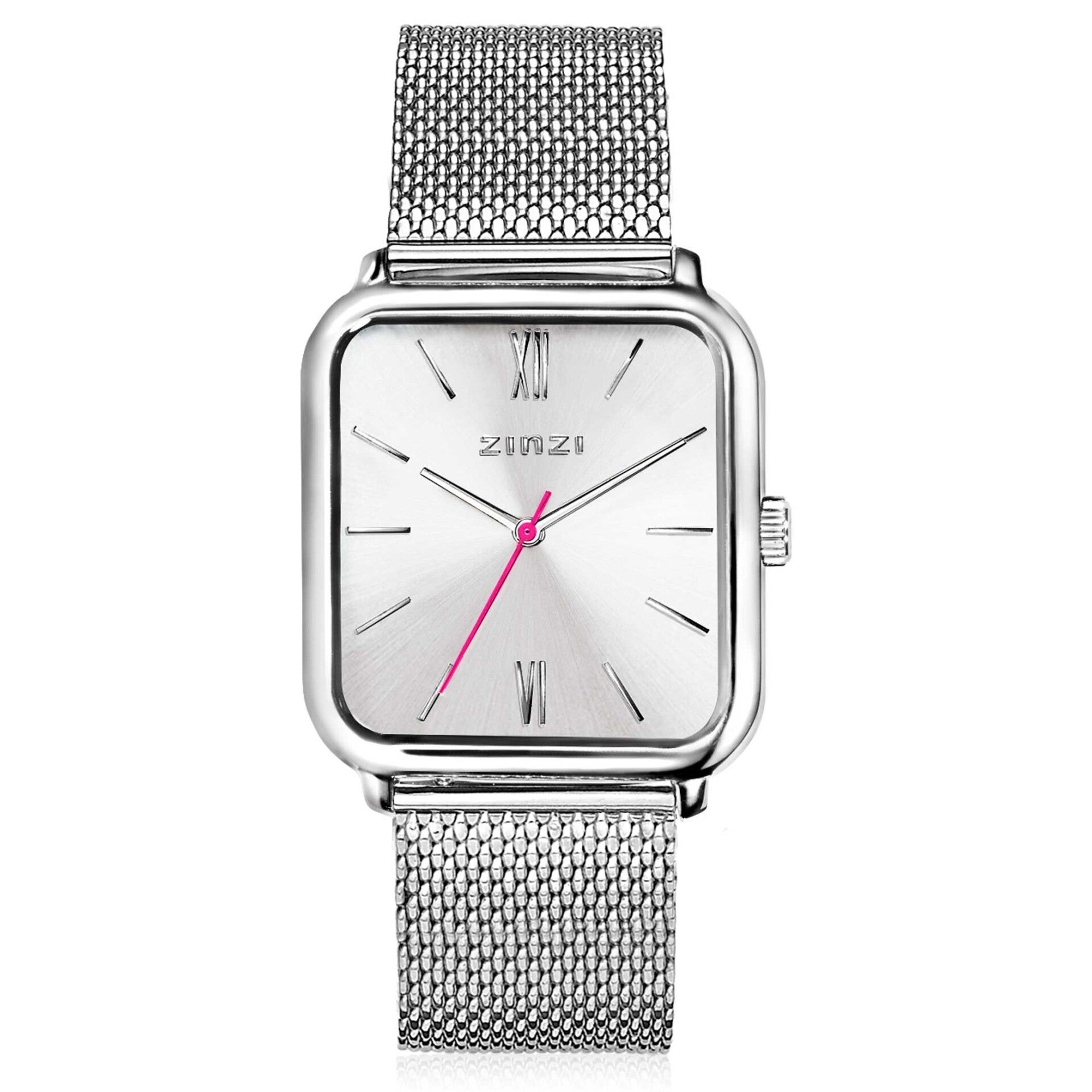 Het ZINZI Square Roman horloge heeft een hippe vorm. Even niet rond, maar rechthoekig. De ronde hoeken zorgen voor een mooie look en extra draagcomfort. Met zijn geheel stalen kast van 30 x 32mm oogt dit horloge trendy op de iedere pols. En de sierlijke romeinse cijfers geven de wijzerplaat een tijdloos karakter. Voorzien van een zilveren 'sunray' wijzerplaat en stalen mesh band in de kleur zilver. De band is eenvoudig te verwisselen door het handige schuifsysteem aan de achterkant. Leuk detail: de felroze 'Zinzi' seconde wijzer. Extra kwaliteit: Voorzien van een extra dun Japans kwaliteitsuurwerk, sterk mineraal glas en het horloge is 3atm waterbestendig (tegen regen en spatwater).