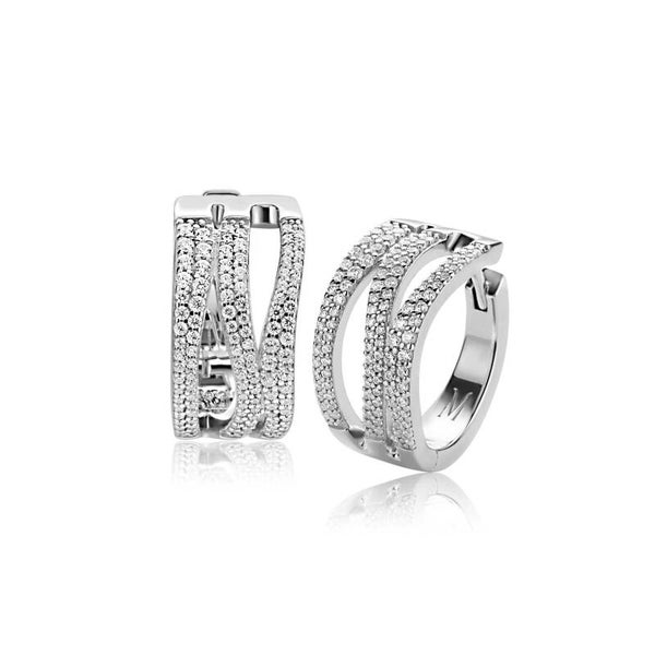 ZINZI zilveren oorringen (18 x 10mm) organisch gevormd, bezet met witte zirkonia's. Exclusief ontworpen door mode-ontwerper Mart Visser. De oorringen hebben een luxe scharniersluiting. Deze zilveren luxe oorringen dragen herkenbaar de signatuur van Mart Visser. Vervaardigd van eerste gehalte zilver (925) en met extra rodiumlaag voor een langdurige glans.