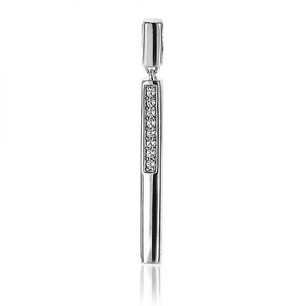 ZINZI zilveren staafhanger, half bezet met witte zirconia’s en half glad. 23mm lang met hangoog.