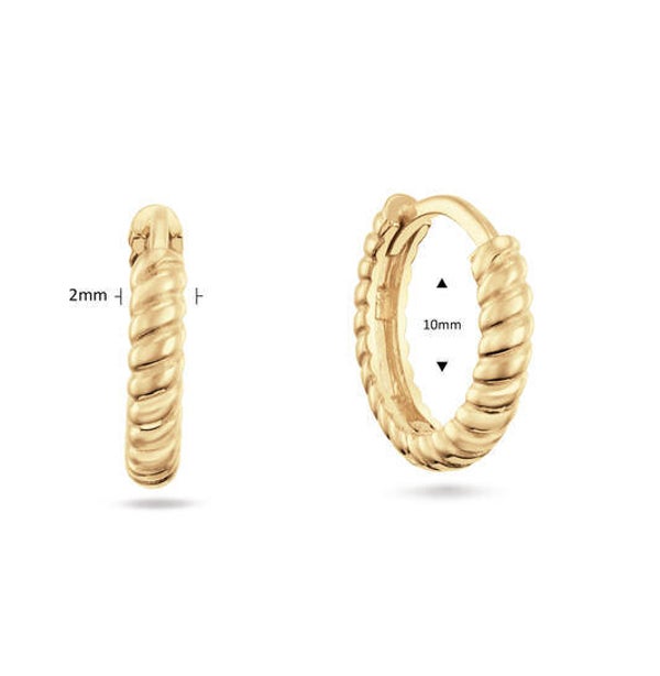Stijlvol en tijdloos dát is deze single hoop. De oorbel heeft een gedraaid effect (twist) over de gehele ring en is gemakkelijk in,- en uit te doen door het klapmechanisme