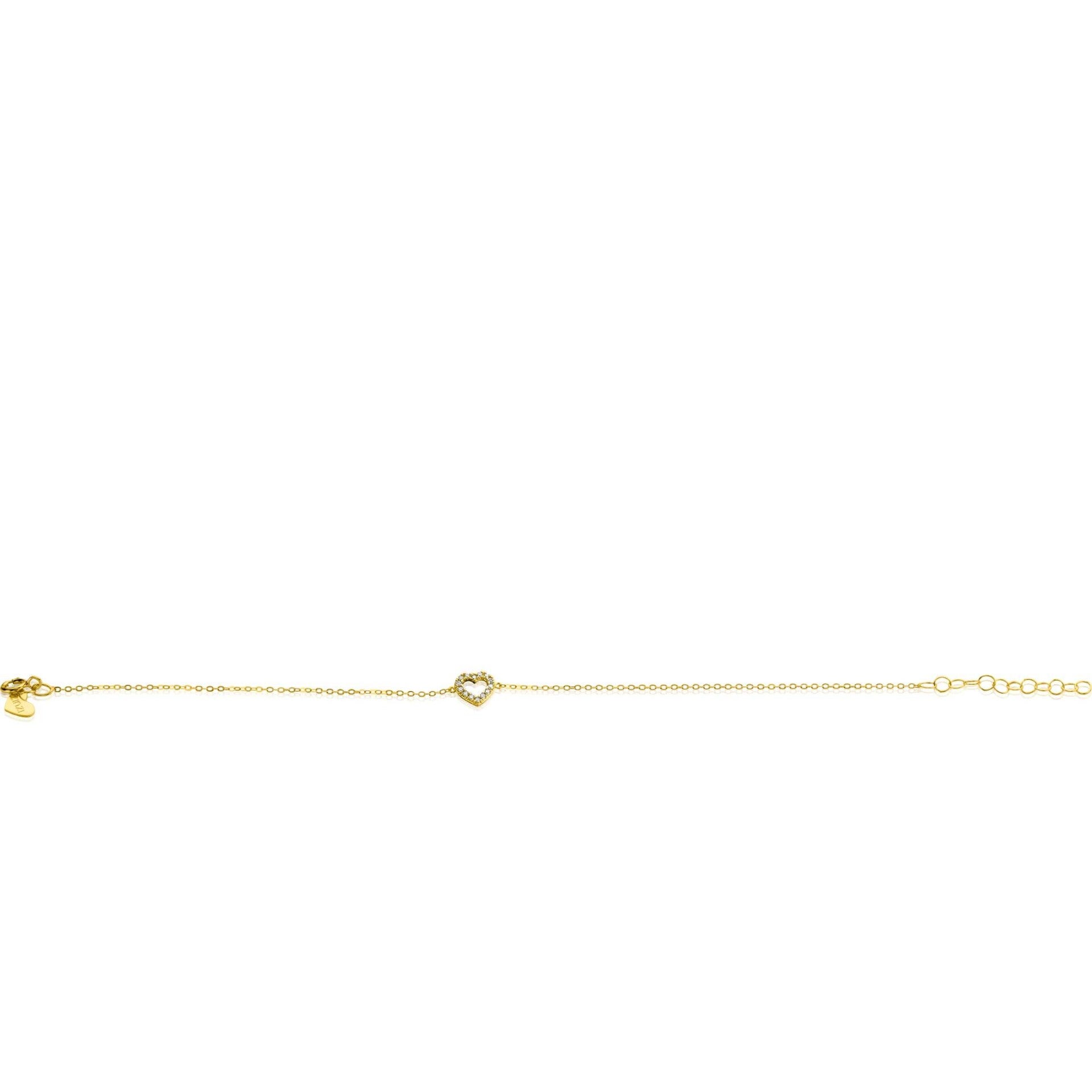 ZINZI Gold 14 krt gouden armband met sierlijk open hartje (7mm). Het hartje is rondom bezet met witte zirconia's. De lengte van de armband is te variëren tussen 16,5 en 19,5cm. Valt mooi om iedere pols. Met herkenbaar 'Zinzi' door het kleine gouden Zinzi hartje bij de sluiting. Vervaardigd van geheel 14 karaat goud (585).