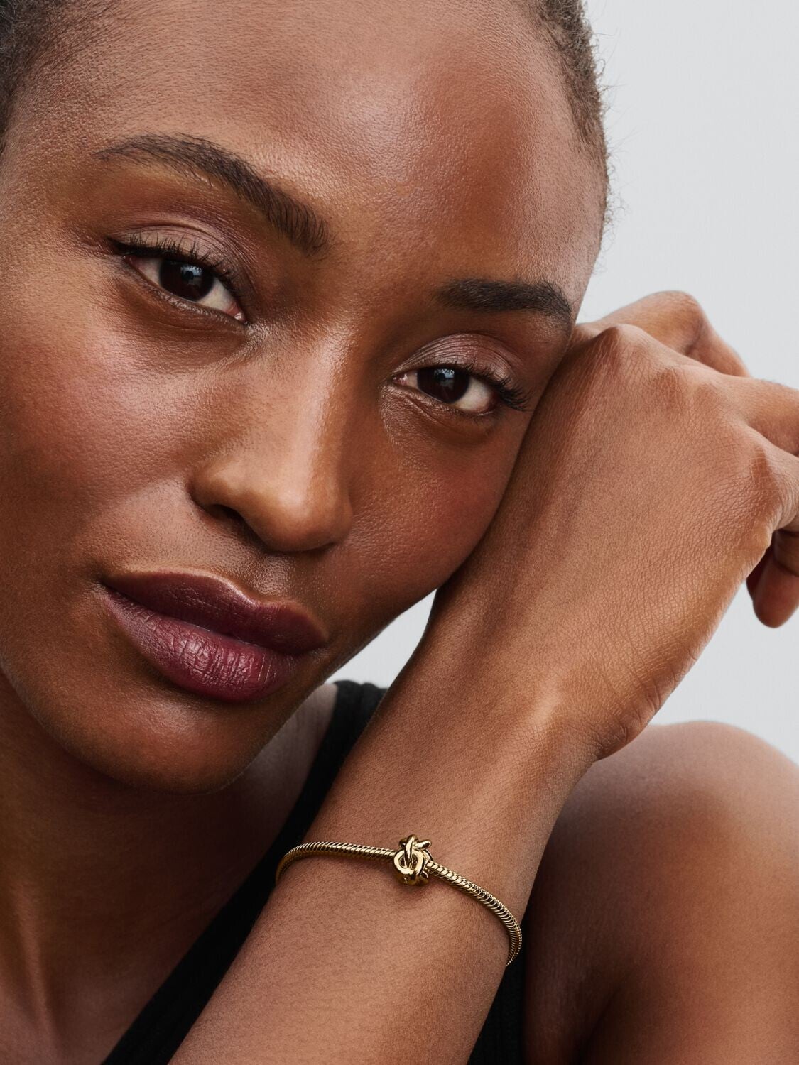 Voeg een symbool van eeuwigheid toe aan je collectie met de Infinity Knot-bedel. Deze vergulde bedel heeft de vorm van een oneindigheidsknoop, een vorm die staat voor verbondenheid, veerkracht en de kracht om vol te houden als het leven een onverwachte wending neemt. Deze bedel voegt niet alleen een driedimensionale, architectonische touch toe aan elke look, maar is ook een herinnering aan ons oneindige vermogen om ons aan te passen en veerkrachtig elke uitdaging aan te kunnen, net zo sterk als een oneindigheidsknoop.