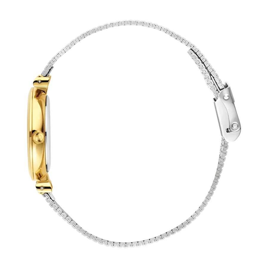Maak kennis met de **Ava Two Tone** – het horloge dat minimalistische stijl en strak design combineert, speciaal voor wie wil dat zijn accessoires spreken zonder te schreeuwen. Dit horloge draait om strakke lijnen, een frisse tweekleurige goud-zilveren afwerking en de juiste balans tussen klassiek en cool. De **goud-zilveren gestreepte band** geeft het een opvallende uitstraling, terwijl de eenvoudige wijzerplaat met gouden accenten het subtiel en stijlvol houdt. Of je hem nu combineert met je favoriete sieraden of solo draagt, de Ava Two Tone past bij elke stijl – van relaxed tot elegant. Perfect voor dagelijks gebruik, maar stijlvol genoeg voor die momenten waarop je indruk wilt maken: de **Ava Two Tone** is jouw go-to voor moeiteloze stijl. Maak een statement met eenvoud en laat je accessoires spreken.