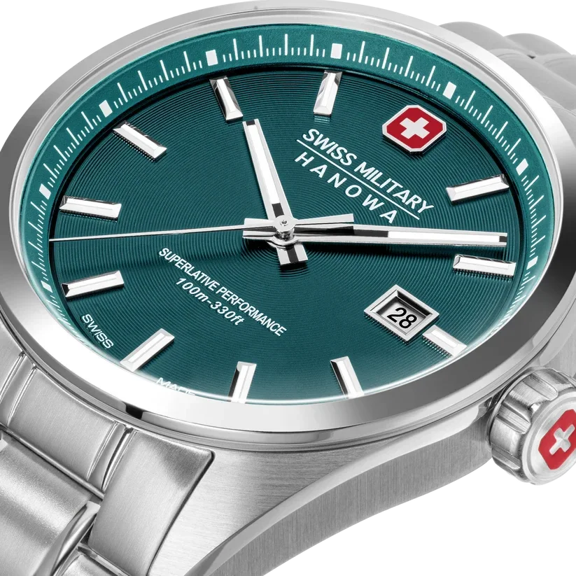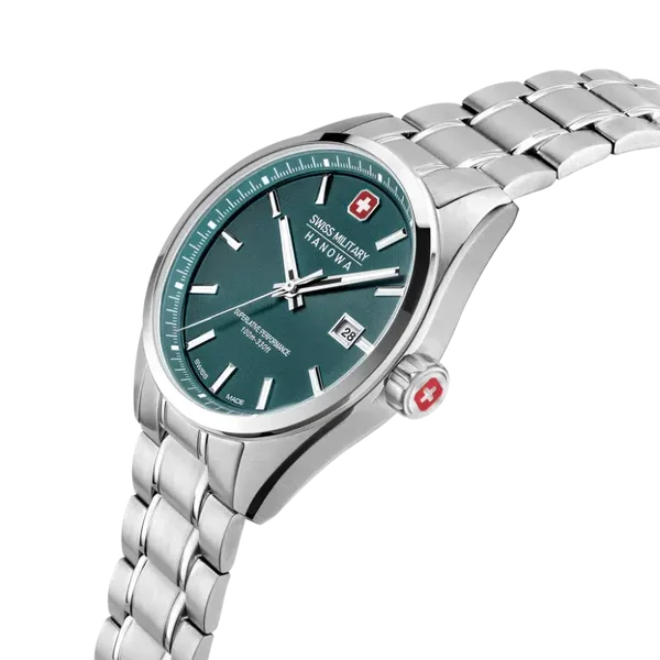Swiss Military Hanowa Pioneer: een combinatie van klassiek Zwitsers design en sportieve esthetiek. Dit betrouwbare horloge, aangedreven door Swiss Made-uurwerken, is gebouwd om de eisen van een actief leven te doorstaan. De goed leesbare wijzerplaat met datumvenster is beschermd door krasbestendig saffierglas voor een heldere tijdweergave. Met een waterdichtheid van 10 ATM gaat de Pioneer naadloos over van dagelijks gebruik naar avontuurlijke ontdekkingstochten.
