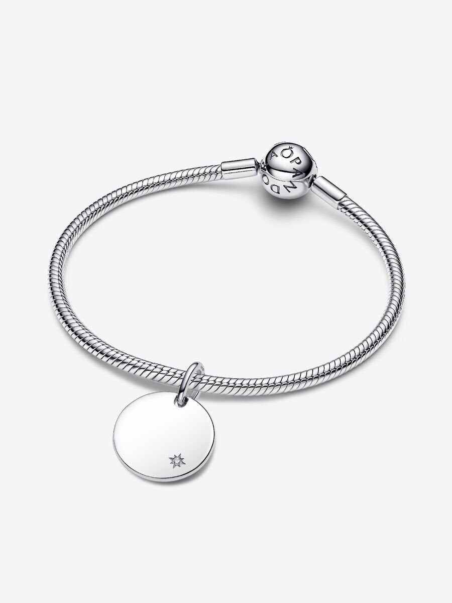Een minimalistisch design waarmee je een stralend statement maakt. Onze sterlingzilveren gepolijste schijfhanger heeft een stralende in het laboratorium gekweekte diamant in een stervormige zetting en is klaar om te worden gegraveerd, zodat hij op jouw manier wordt gepersonaliseerd.