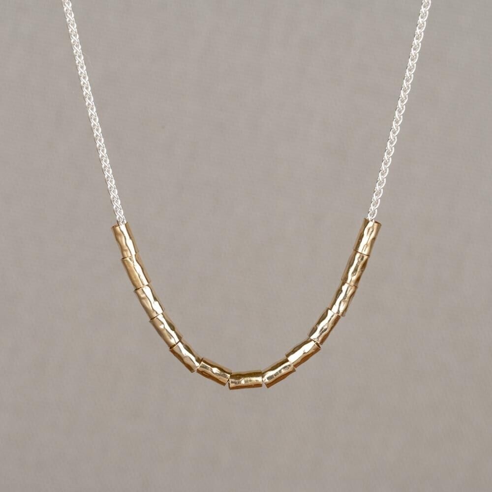 Collier gemaakt van 925 sterling zilver in combinatie met Goldfilled buisjes. Combineer met een paar mooie oorbellen, een ring en armband voor een complete look!