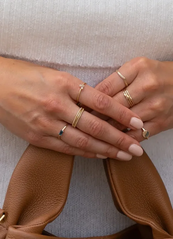 Met deze ring laat je iedereen kijken! De 14 karaat gouden Windsor ring heeft aan de bovenkant een v-vorm met 2 banden. De bovenste hiervan is glad en de onderstaande heeft een bubbeltjes rand. Combineer de Windsor ring met andere Jackie ringen!