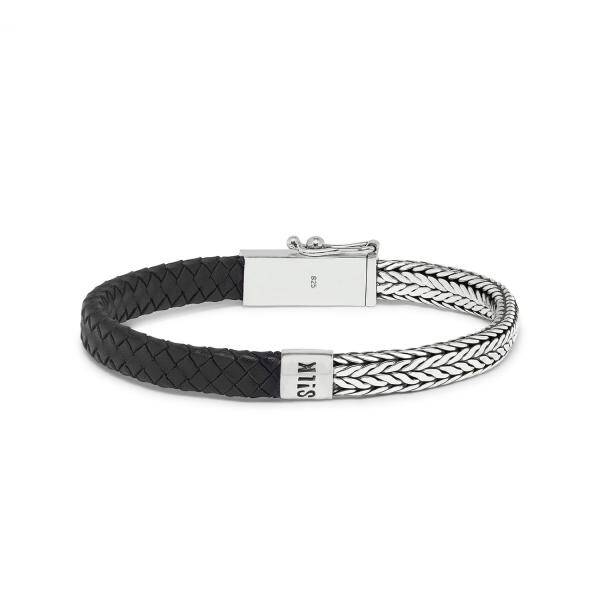 Silk Jewellery Armband Zilver + Leer SLK369BLK