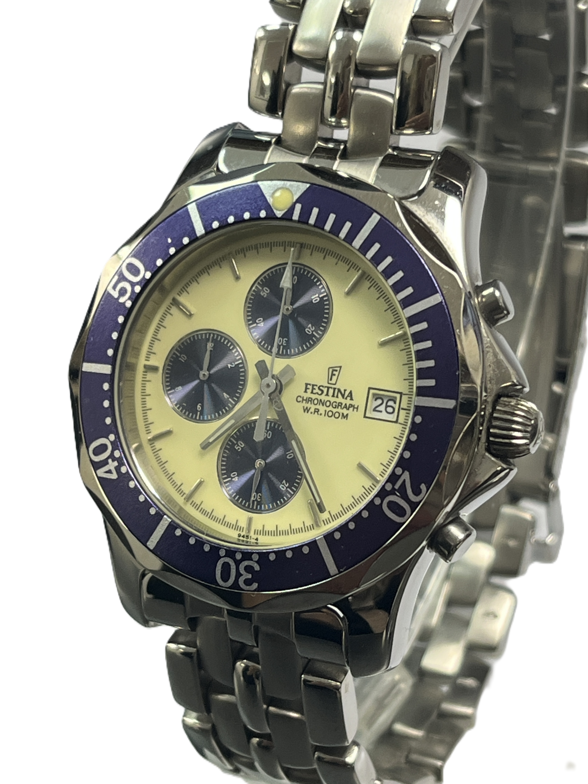 - Tijdsaanduiding: Analoog / Chronograaf