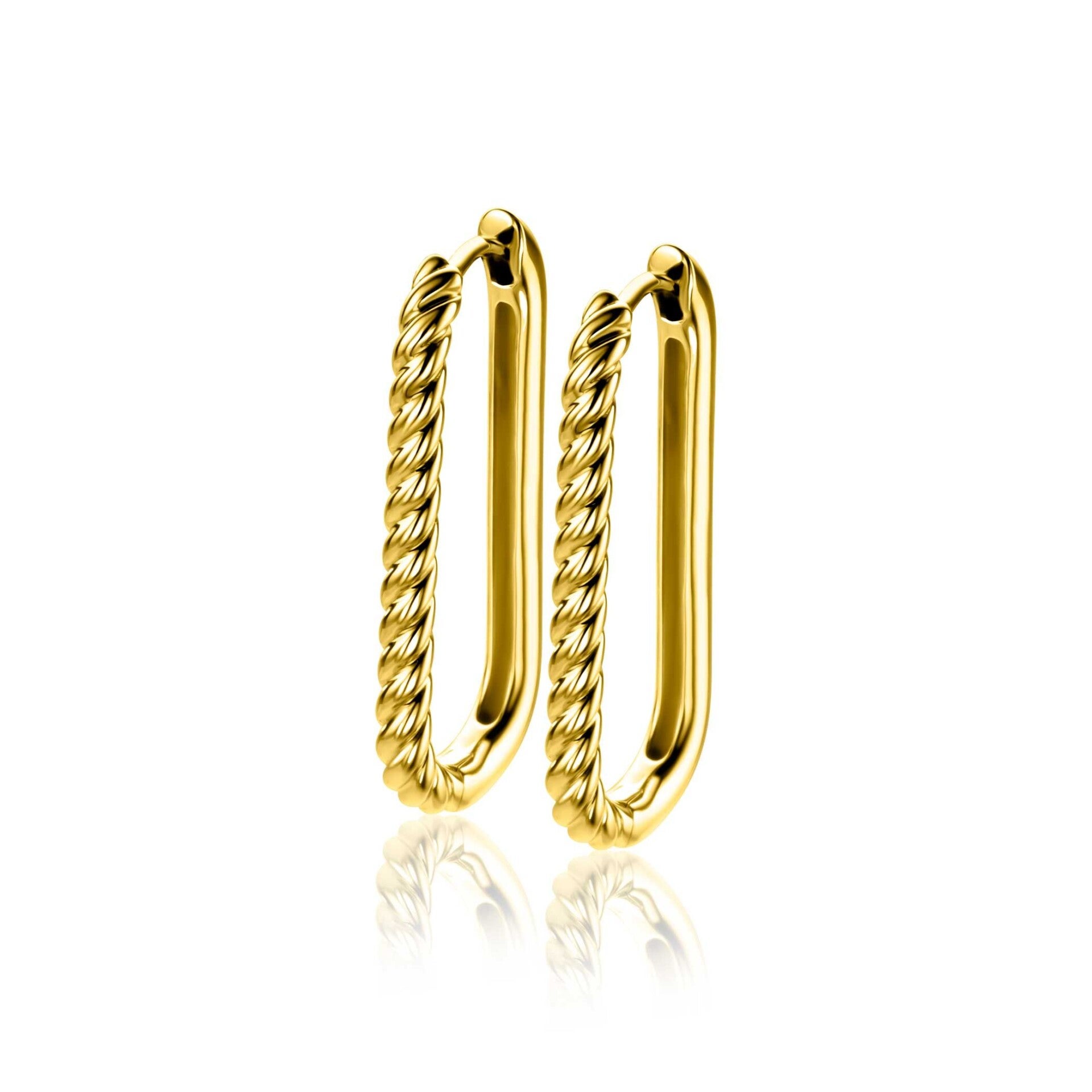 ZINZI gold plated zilveren oorringen (28x2mm) in ovale vorm met een gedraaide buis (zoals een wokkel). Met luxe en gemakkelijke klapsluiting. Vervaardigd van eerste gehalte zilver (925) en extra geel verguld.