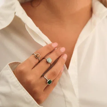 Ontdek de magie van onze zegelring met blauwgroene Amazonite edelsteen. Perfect voor een dag vol elegantie en reflectie.