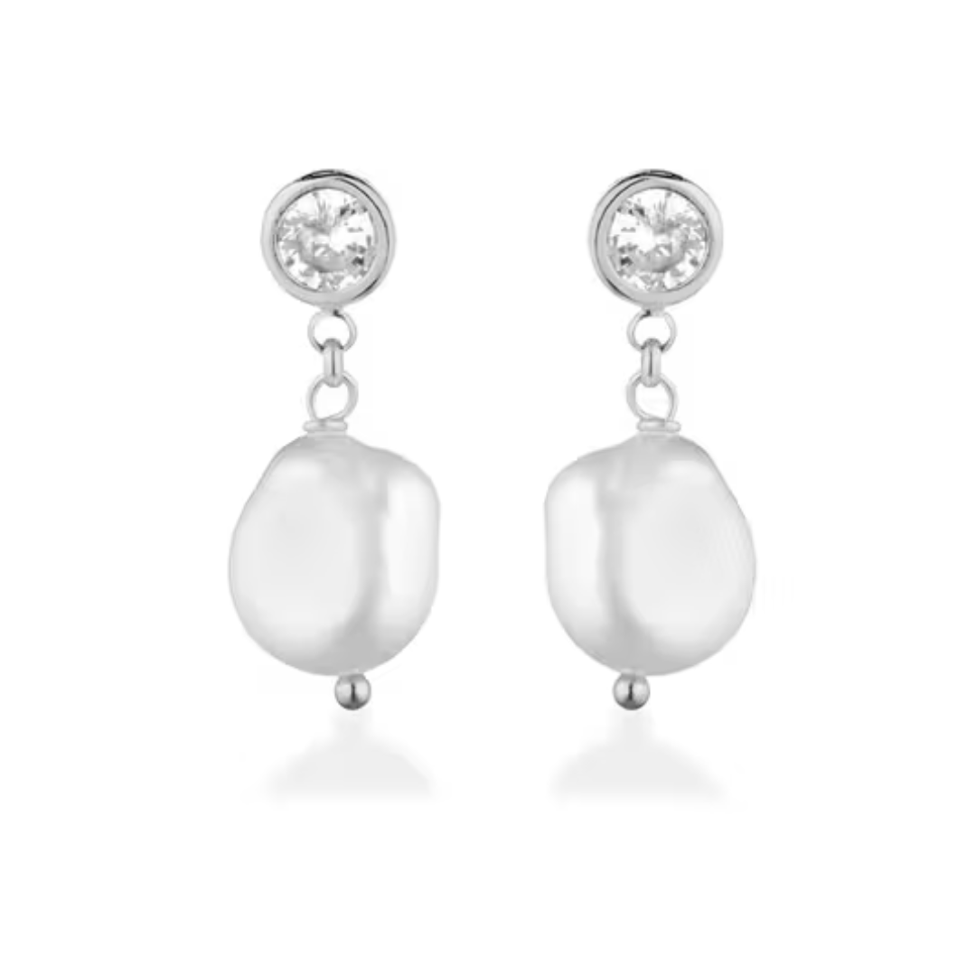 Lelune zilveren oorbellen met kristal. Deze leuke pareloorbellen zijn op het oor bezet met een transparante kristal. Onder de kristal bungelt een witte zoetwaterparel. Deze oorstekers zijn 2,4 cm lang. U ontvangt de oorbellen in cadeauverpakking.