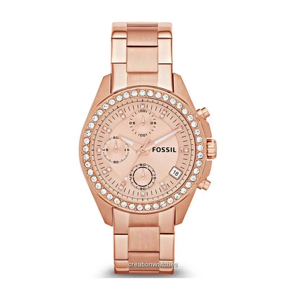 Fossil Dames Horloge Roze met Zirkonia's ES3352