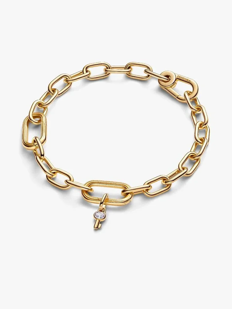 Hier is je nieuwe sleutelset. Onze vergulde minihanger is aan de ene kant bezet met een heldere zirkonia en aan de andere kant met een uitgesneden ster. Ontgrendel de deur naar je volgende look.