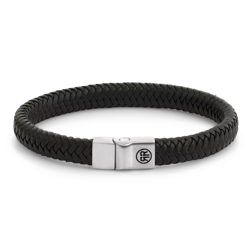 Rebel & Rose Armband Leather Herringbone Black RR-M0061-S