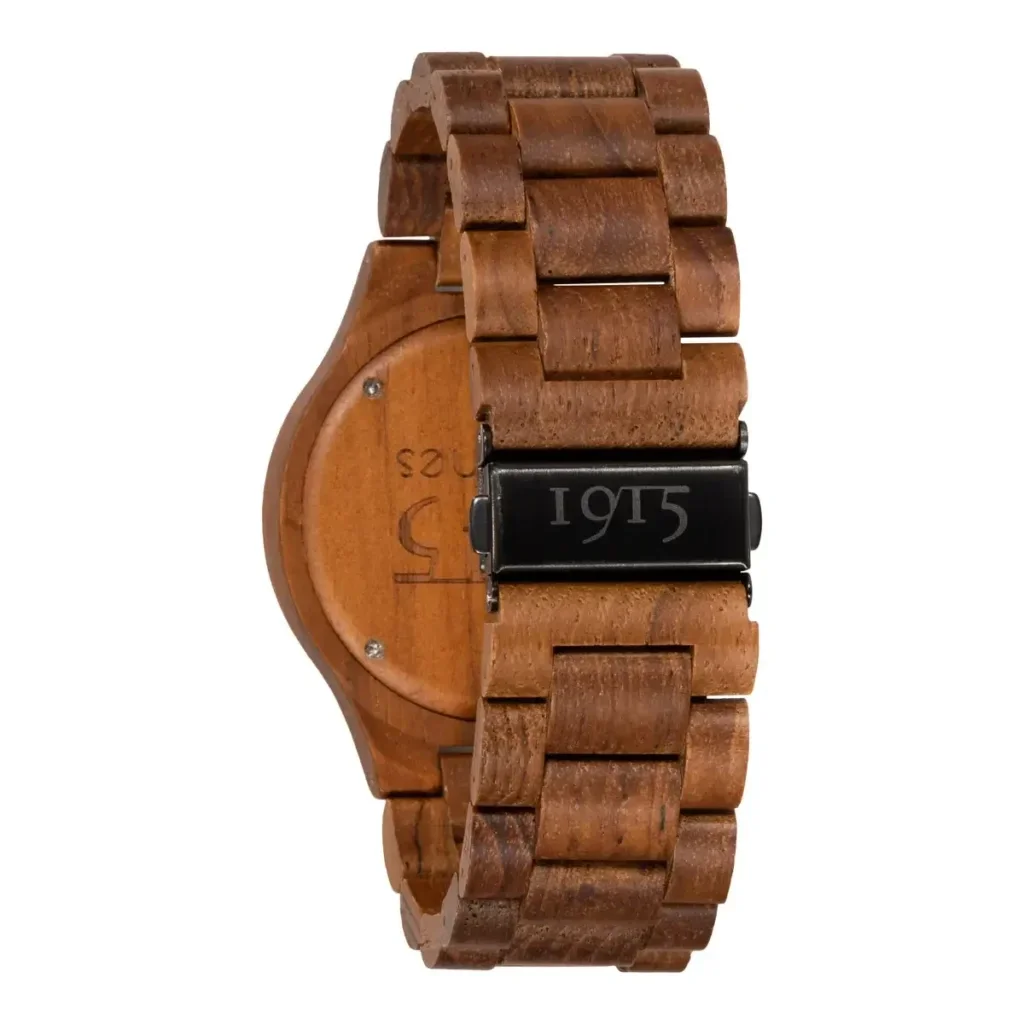 Het horloge is meesterlijk vervaardigd uit karaktervol teakhout, een houtsoort die bekend staat om zijn duurzaamheid en unieke textuur. Teakhout biedt niet alleen een rijke esthetiek, maar verzekert ook dat elk horloge uniek is door de natuurlijke variaties in het hout. Gecombineerd met een groot glas, creëert het een illusie van ruimtelijkheid, waardoor het horloge groter lijkt zonder in te boeten aan draagcomfort.