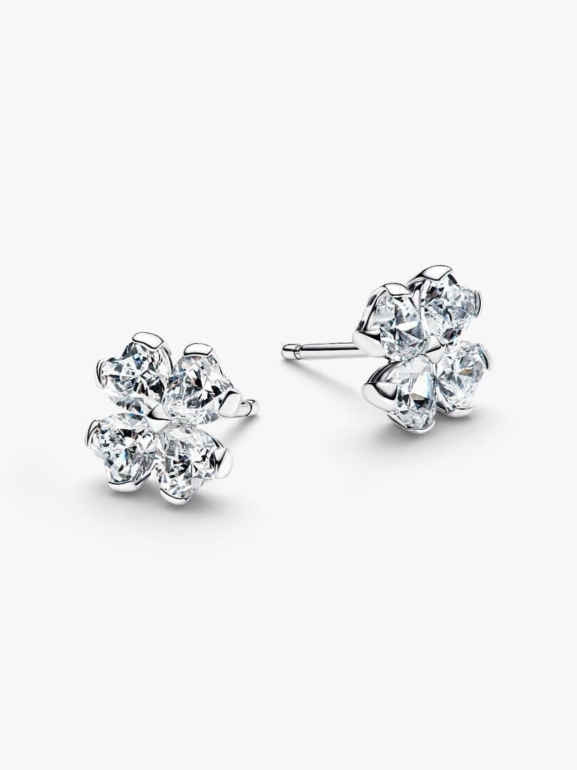 Wees uniek. Onze sterlingzilveren oorstekers sprankelen met hartvormige stenen in de vorm van een klavertje vier. Een eerbetoon aan de schoonheid van de natuur en symbolen van liefde en geluk.