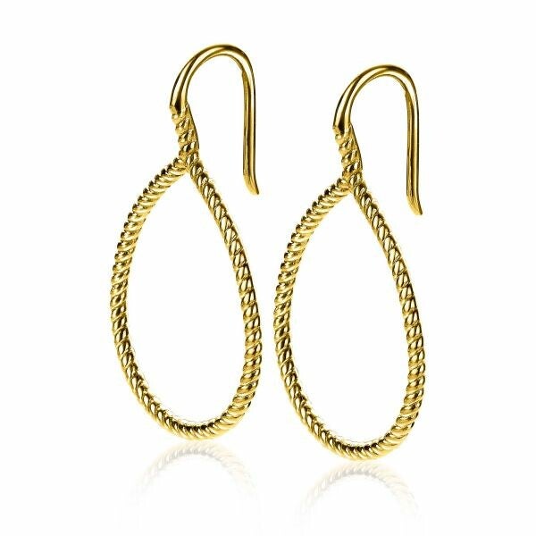 ZINZI zilveren oorhangers geel verguld (32mm) met grote open druppelvorm. De druppelvorm heeft een mooi gedraaid effect. Vervaardigd van eerste gehalte zilver (925) en voorzien van een extra geelgoudkleurige laag.