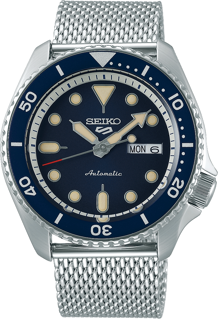 Seiko 5 Sport met dag/datum en 41 uur gangreserve.