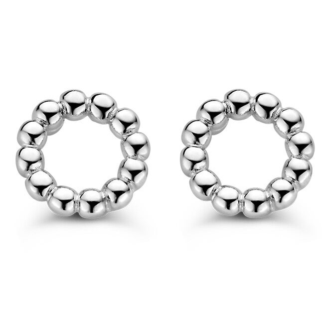 Deze Rosa Di Luca oorstekers zijn gemaakt van eerste gehalte zilver. In de vorm van een cirkel met bolletjes motief.
