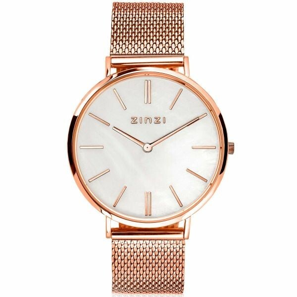 Het nieuwe ZINZI Retro horloge is klassiek, trendy en tijdloos tegelijk. Geïnspireerd op de 'seventies', maar met de bekende ZINZI touch ontworpen. Het extra dunne Japanse uurwerk met datum en de platte ronde stalen roségoudkleurige kast (38mm) zorgen voor een elegante maar fashionable look. Voorzien van een witte parelmoer wijzerplaat en stalen mesh band in de kleur roségoud. De band is eenvoudig te verwisselen door het handige schuifsysteem aan de achterkant. Ook 5atm waterbestendig (tegen regen en spatwater)