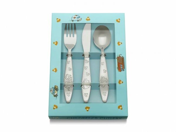 3-delig kindercouvert van 18/10 RVS. Wordt geleverd in een kleurrijke geschenkverpakking en is vaatwasmachinebestendig.