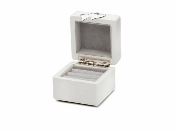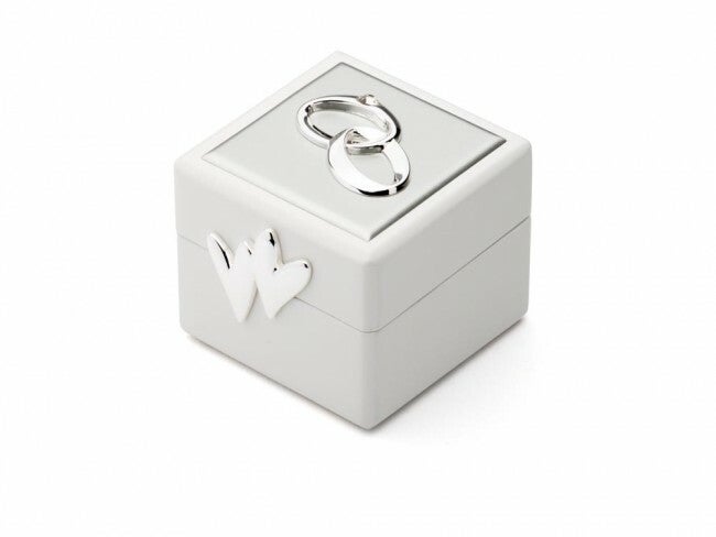 Bewaar je trouwring in dit fraaie trouwringdoosje. Het doosje is voorzien van een verzilverd embleem. Afmetingen 66x60x55mm.