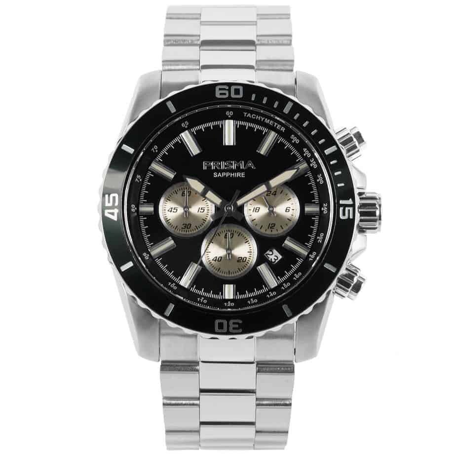 Prisma 1880 is een stoer herenhorloge om een sportieve indruk te maken. Deze zwarte chronograaf met goudkleurige sub-dials versterkt snelheid en lef. De P.1880 om de pols maakt een statement van ambitie en leiderschap. De betrouwbaarheid van het horloge is gewaarborgd door gebruik te maken van krasvrij saffierglas, edelstaal en 10 ATM waterdichtheid.