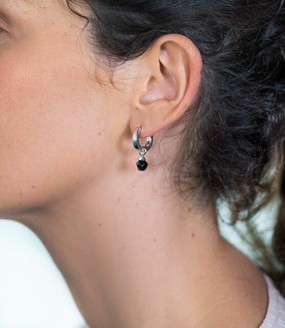 ZINZI zilveren creoolhangers met zwarte beads. De bead is 6mm groot. Hang ze sierlijk aan je zilveren Zinzi oorringen. De oorringen zijn niet bij de prijs inbegrepen. Vervaardigd van eerste gehalte zilver (925) en met extra rodiumlaag voor een langdurige glans.