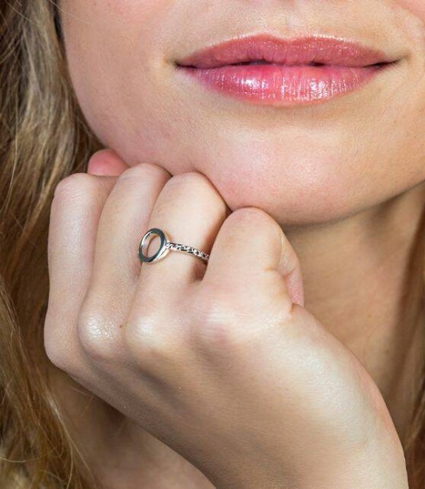 ZINZI zilveren ring met een opvallend glad open rondje en een gourmet schakel op de scheen. De ring is vervaardigd van eerste gehalte zilver (925) en voorzien van een extra rodiumlaag voor een langdurige glans.