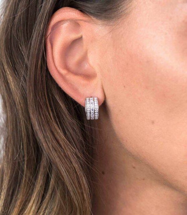 ZINZI zilveren creolen met witte zirconia's en voorzien van een luxe scharniersluiting. De creolen zijn 14x8mm groot. De oorsieraden zijn vervaardigd van eerste gehalte zilver (925) en voorzien van een extra rodiumlaag voor een langdurige glans.
