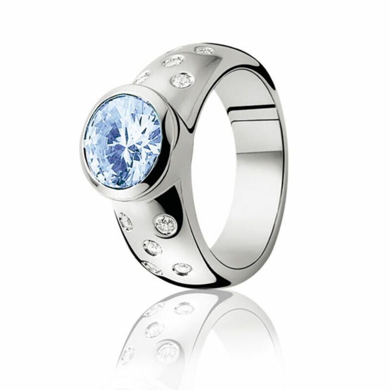 ZINZI zilveren ring bezet met blauwe zirconia. Vervaardigd van eerste gehalte zilver (925) en met extra rodiumlaag voor een langdurige glans.
