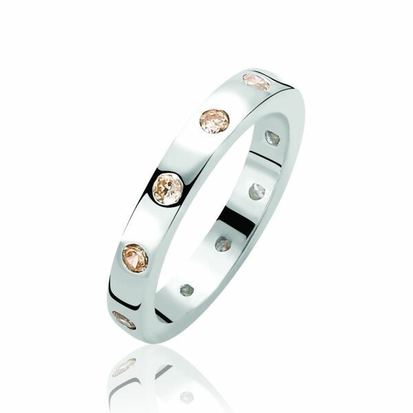 ZINZI zilveren aanschuifring rondom gezet met zirconia in de kleur champagne. Ideaal om te combineren met andere ringen. Mix & match en maak je eigenstyle. Vervaardigd van eerste gehalte zilver (925) en met extra rodiumlaag voor een langdurige glans.