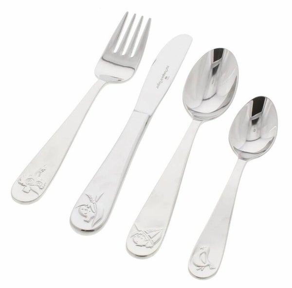 Eten wordt voor de kleine tafelgasten nòg leuker met eigen bestek. Dit leuke setje is leuk om te geven als kraamcadeau, maar ook voor een verjaardag! Verpakt in een mooie geschenkverpakking. Het bestek is vervaardigd uit 18/10 RVS en kan in de vaatwasser. De bestekonderdelen kunnen worden gegraveerd.