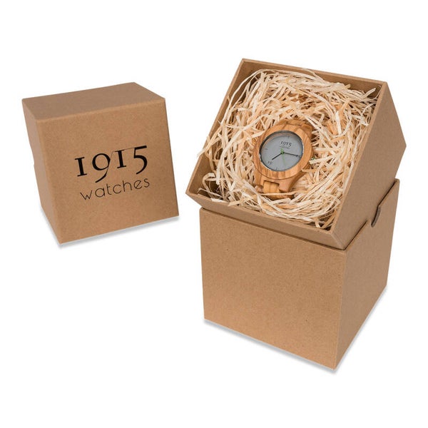 De 1915 watch lady milano green is een modieus olijfhouten horloge.
