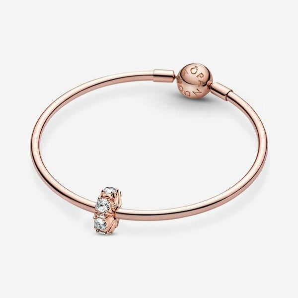 Ga op de elegante toer met de Sprankelende Klauwtjes Clip Bedel. Deze bedel is hand-finished in een unieke met 14k roségoud vergulde metaalmix en bestaat uit een lijn van zirkonia's in klauwzetting. De zichtbare klauwtjes geven de steentjes extra sprankeling en vormen een verfijnd patroon op de zijkanten van de bedel. Dankzij de silicone grips blijft de bedel perfect op zijn plaats aan een snake chain-bedelhouder. Deze bedel sprankelt in het licht en geeft elke look een elegante touch.
