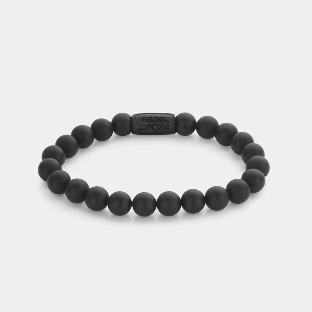 Edelstenen bead armband, handgemaakt van 8mm natuurstenen kralen met een stalen zwarte sluiting. Het Rebel & Rose sieraad is makkelijk te combineren met andere zilveren, leren of kralenarmbanden.
