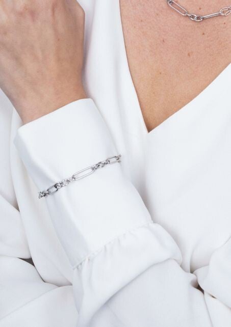 ZINZI zilveren armband met langwerpige en ovale schakels (5,5mm breed), gecombineerd met dunne 'paperclip' schakelkettinkjes. De lengte van de armband is te variëren tussen 18 en 20cm. Deze mooie combinatie maakt de armband stoer en stijlvol tegelijk. Bij sluiting herkenbaar ZINZI, door het zilveren Zinzi hartje. Vervaardigd van eerste gehalte zilver (925) en voorzien van een extra rhodiumlaag voor een langdurige glans.