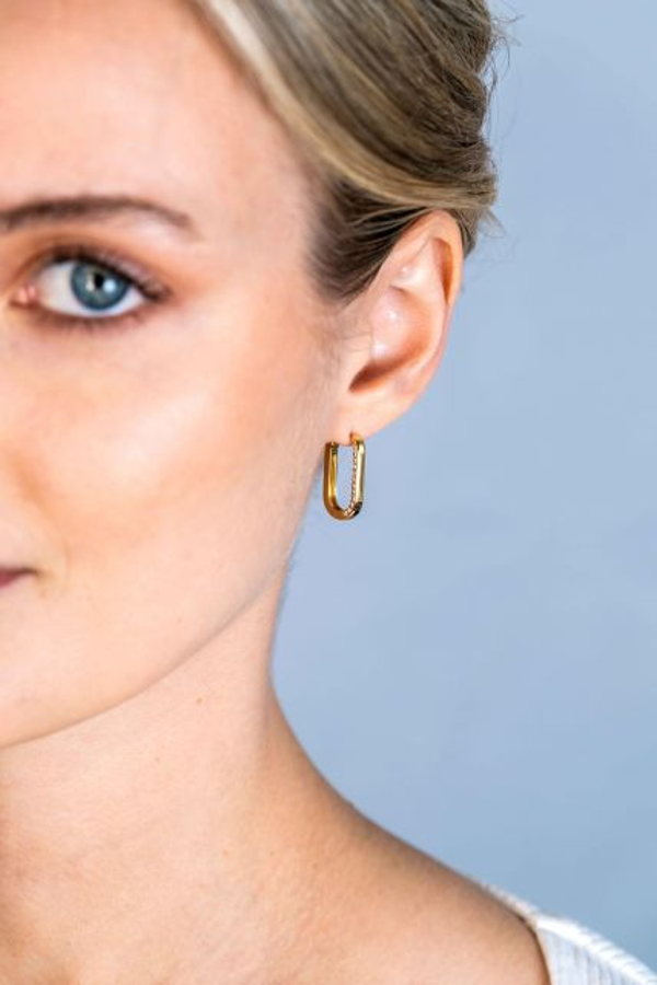 ZINZI gold plated zilveren oorringen 20mm in ovale vorm, waarbij de zijkant bezet is met witte zirconia's. Voorzien van luxe scharniersluiting. Deze oorringen zijn te combineren met al onze oorbedels. De oorsieraden zijn vervaardigd van eerste gehalte zilver (925) en voorzien van een extra 14K geel vergulding.