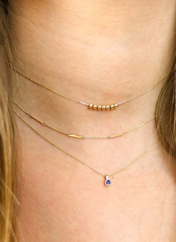 De Triple Bar Necklace is gemaakt van 14K goud. Deze ketting met drie bars vormt de perfecte basis voor jouw ketting layer-party. Stack it!